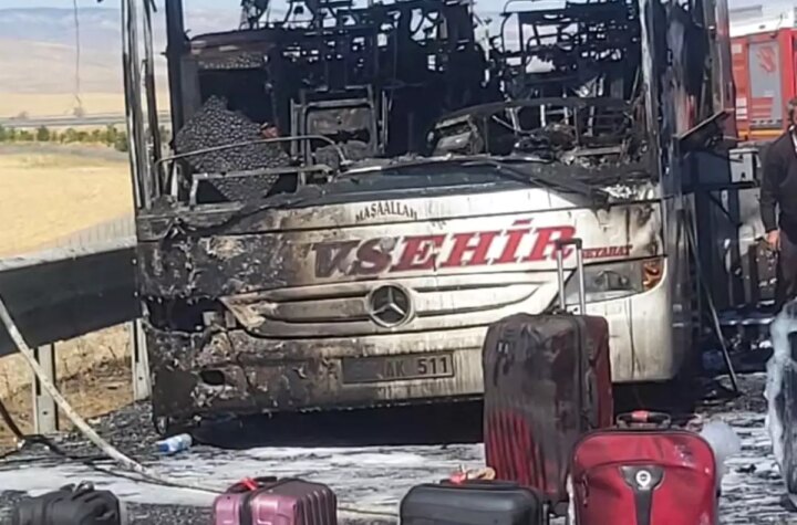 Ankara'nın Gölbaşı ilçesinde seyir halindeyken yanmaya başlayan bir yolcu otobüsü, itfaiye takımlarının müdahalesiyle söndürüldü....