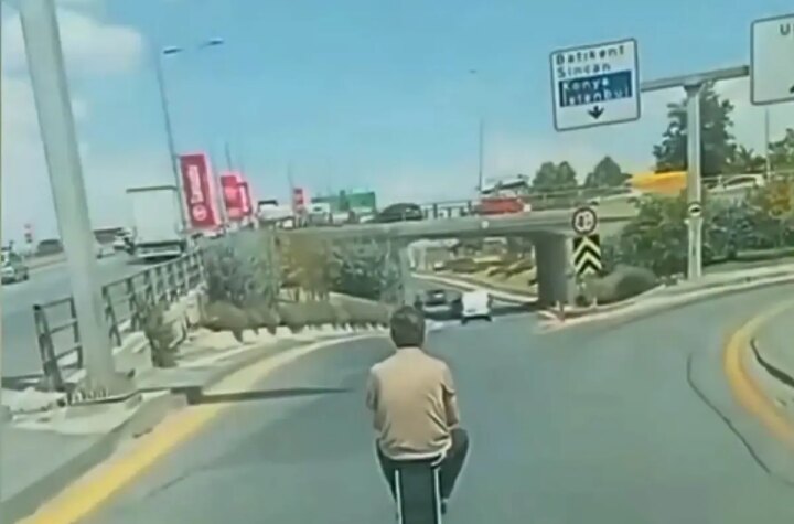 Ankara'nın Altındağ ilçesinde bir kişi, elektrikli skuter ile valiz taşıyarak trafikte seyahat yaptı. Dehşet...